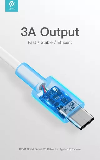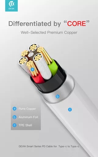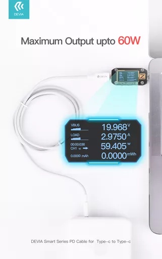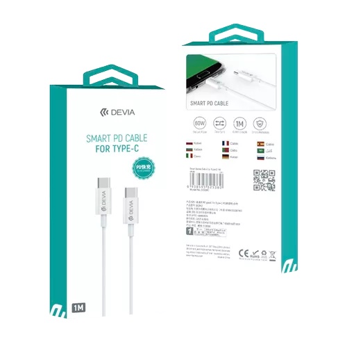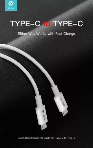Devia – 1.2m (60W) Power Delivery – USB-C to USB-C Cable – White