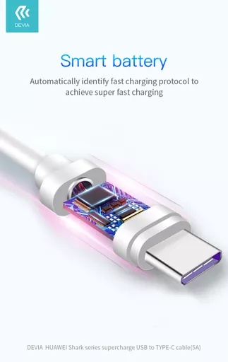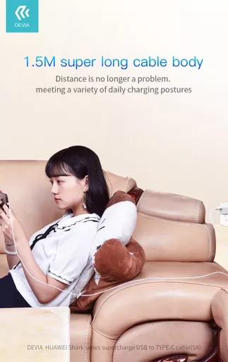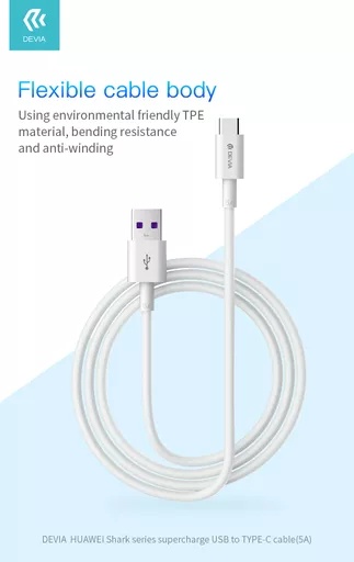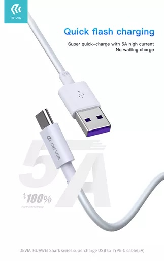 Devia – 1.5m (5A) USB to USB-C Cable – White