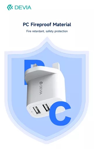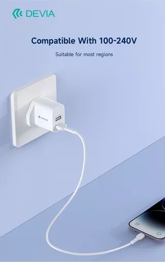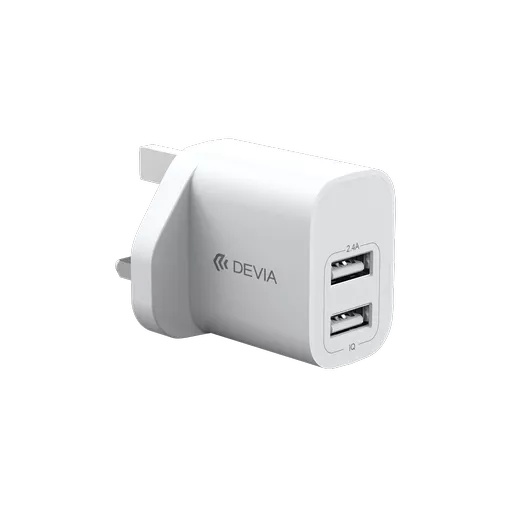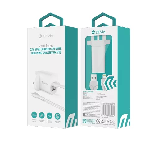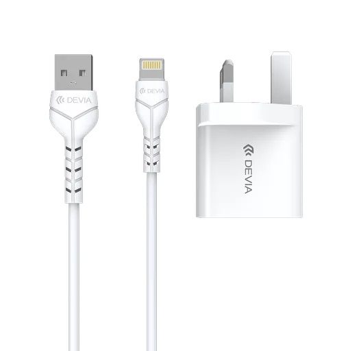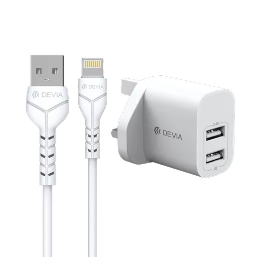 Devia – 2.4A Dual USB Plug & 1m Non-MFI Lightning Cable – White