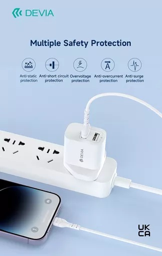 Power up your Apple devices quickly and safely with this versatile charging kit by Devia. This all-in-one set includes a dual USB wall plug and a 1-meter Lightning cable, allowing you to charge multiple devices at the same time. For a reliable and efficient charging solution, visit Repair Alliance in Dundee.