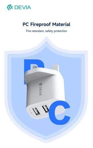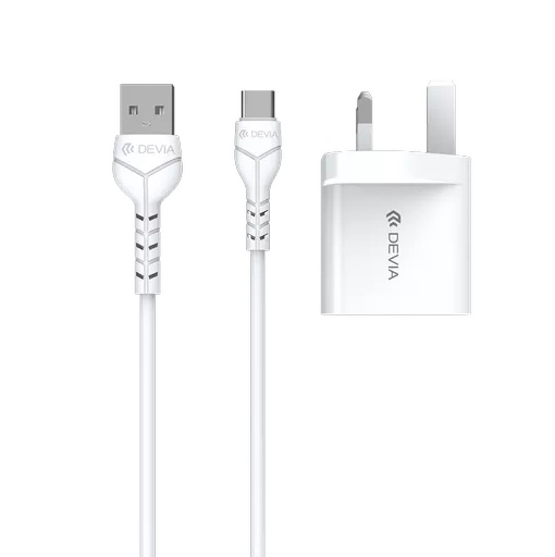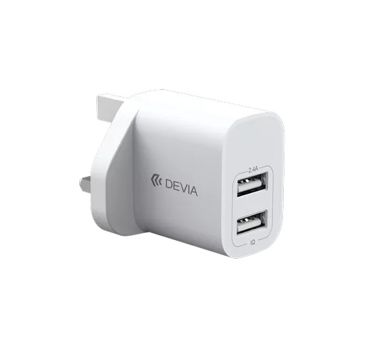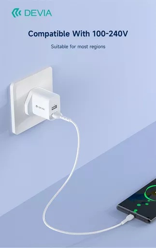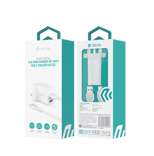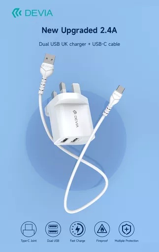 Devia – 2.4A Dual USB Plug & 1m USB-C Cable – White