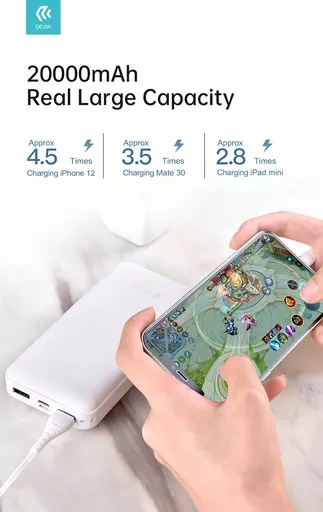 Devia – 20,000mAh Kintone Dual Port LED Indicator Powerbank – White