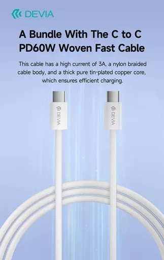 Be the first to review “Devia – 30W GaN USB-C 3-Pin UK Charging Plug & 1.2m USB-C to USB-C Cable – White”