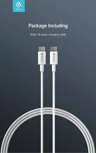 Devia – 45W GaN Dual USB-C 3-Pin UK Charging Plug & 1.5m USB-C to USB-C Cable – White