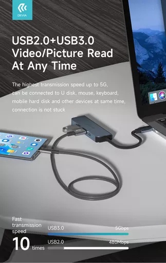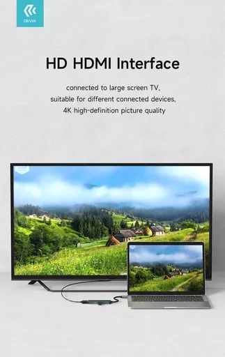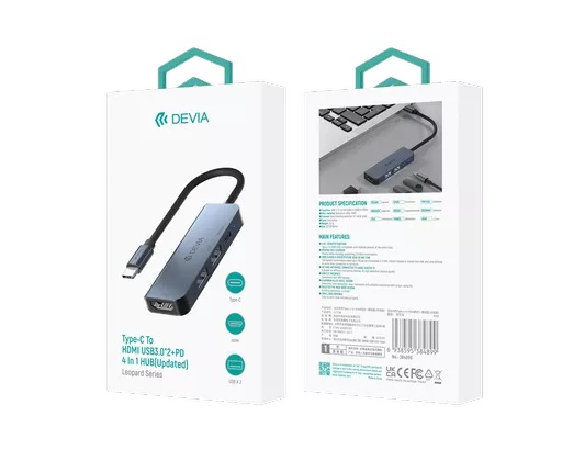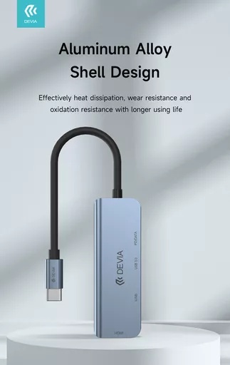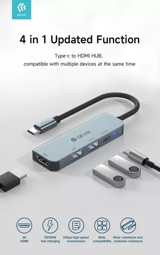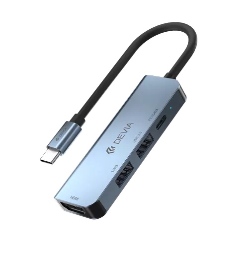 Devia – USB-C 4in1 Hub – PD, HDMI, & USB – Grey