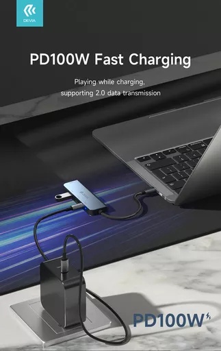 - 100W Power Delivery – The USB-C PD port supports a powerful input of up to 100W, allowing you to charge your laptop at high speed while using the other hub functions.