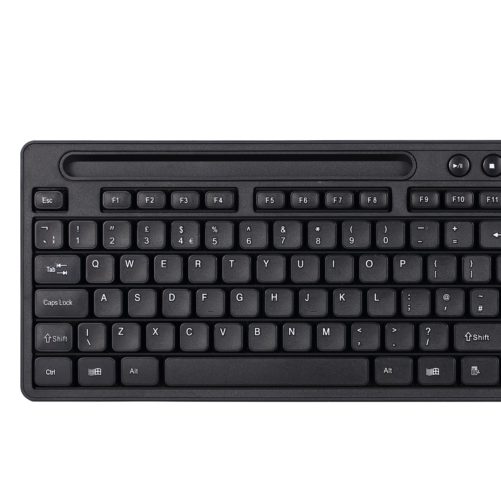 - Full-Size Keyboard – Features a full QWERTY UK layout with a separate numberpad and convenient multimedia hotkeys.