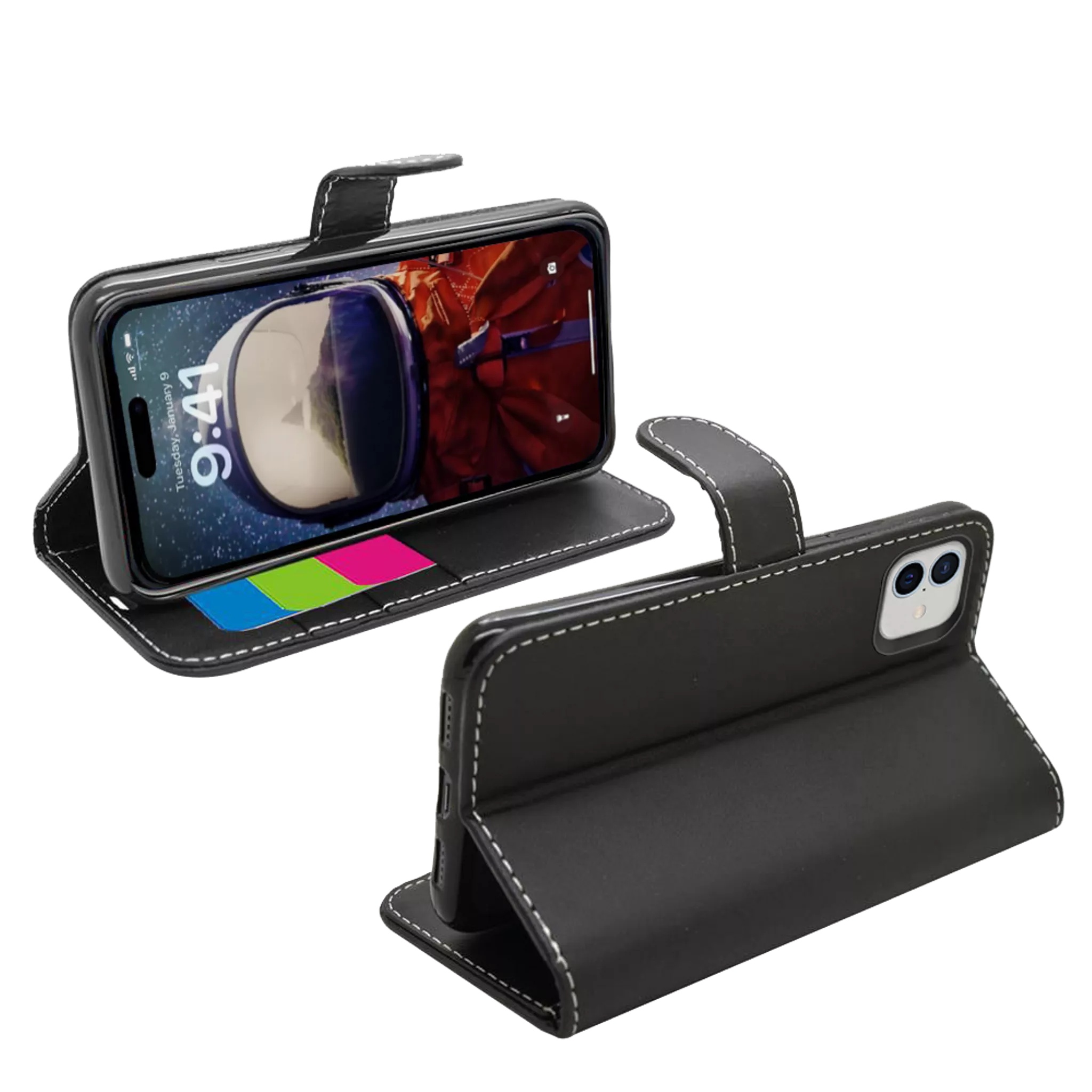 Protect your new iPhone 16 with this stylish and functional black wallet case. It offers discreet security for your device and ample space for your essential cards, all in one elegant package. Find it locally at Repair Alliance in Dundee.
